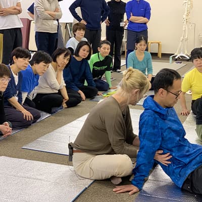 フェルデンクライス・ジャパン主催のFPTPを卒業してプラクティショナーとして活躍されている方は、2019年現在で100名を超えています。私たちの養成コースでは、海外からの受講生も積極的に受け入れており、授業は英語と日本語のバイリンガル環境で行われています。そのため質疑応答なども他のコースと比べてはるかに活発で、日本人にとっても刺激的な学習環境になっています。同時に、日本語への通訳に費やされる時間を考慮して授業時間を通常より10%ほど長くするなど、日本人にとっても居心地の良い学習環境を提供しています。